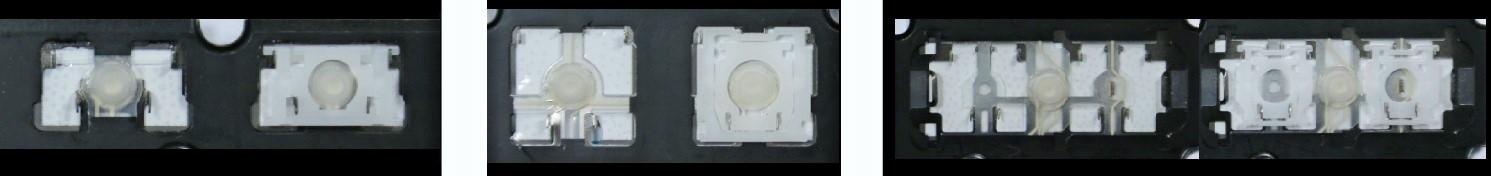 - Na maioria dos teclados que parecem idênticos por fora foram usados diferentes tipos de encaixes sob as teclas.