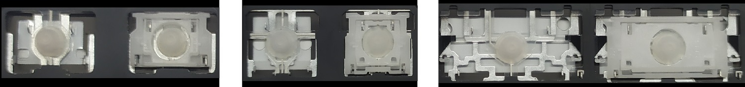- Na maioria dos teclados que parecem idênticos por fora foram usados diferentes tipos de encaixes sob as teclas.