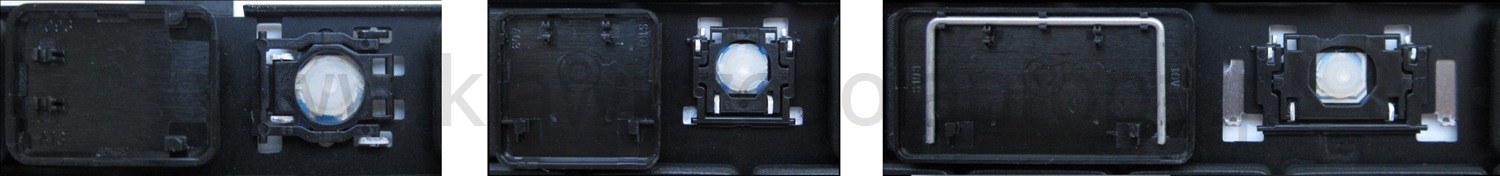 - Para escolher o modelo correto, compare a foto do espaço vazio no seu teclado com as fotos abaixo, ou remova a tecla “A” – por baixo dela há sempre um encaixe médio.