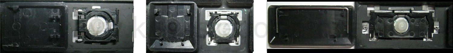 - Para escolher o modelo correto, compare a foto do espaço vazio no seu teclado com as fotos abaixo, ou remova a tecla “A” – por baixo dela há sempre um encaixe médio.