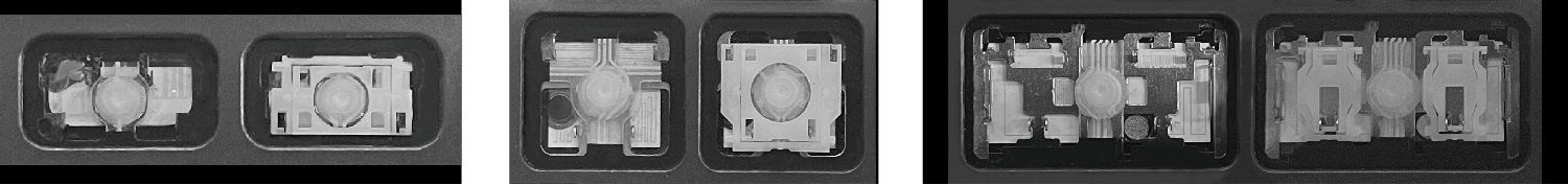 - Na maioria dos teclados que parecem idênticos por fora foram usados diferentes tipos de encaixes sob as teclas.