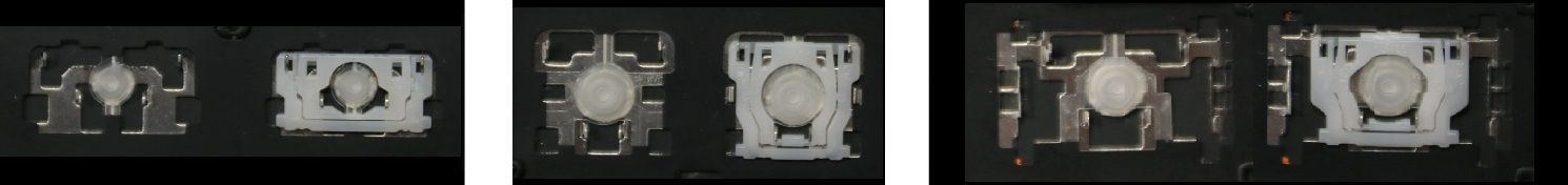 - Na maioria dos teclados que parecem idênticos por fora foram usados diferentes tipos de encaixes sob as teclas.