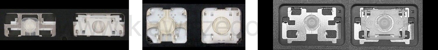 - Para escolher o modelo correto, compare a foto do espaço vazio no seu teclado com as fotos abaixo, ou remova a tecla “A” – por baixo dela há sempre um encaixe médio.
