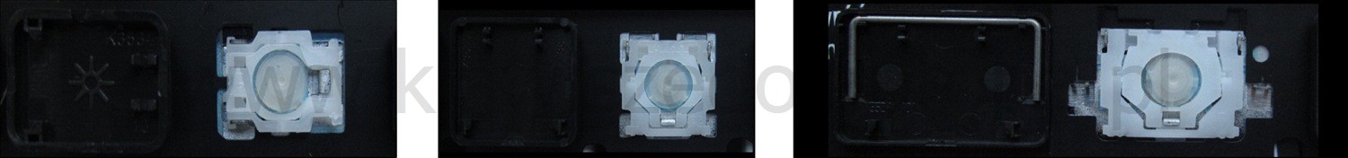 - Para escolher o modelo correto, compare a foto do espaço vazio no seu teclado com as fotos abaixo, ou remova a tecla “A” – por baixo dela há sempre um encaixe médio.