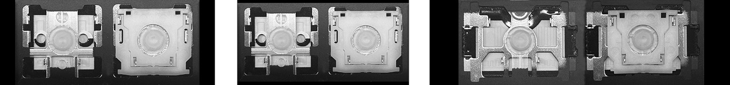 - Na maioria dos teclados que parecem idênticos por fora foram usados diferentes tipos de encaixes sob as teclas.