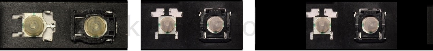 - Para escolher o modelo correto, compare a foto do espaço vazio no seu teclado com as fotos abaixo, ou remova a tecla “A” – por baixo dela há sempre um encaixe médio.