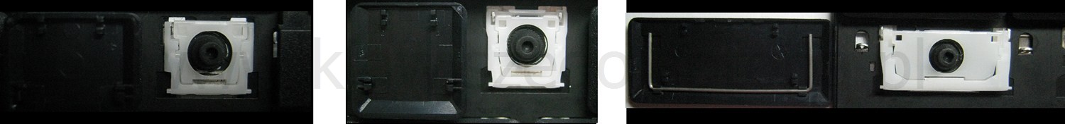 - Para escolher o modelo correto, compare a foto do espaço vazio no seu teclado com as fotos abaixo, ou remova a tecla “A” – por baixo dela há sempre um encaixe médio.