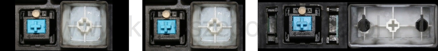 - Para escolher o modelo correto, compare a foto do espaço vazio no seu teclado com as fotos abaixo, ou remova a tecla “A” – por baixo dela há sempre um encaixe médio.
