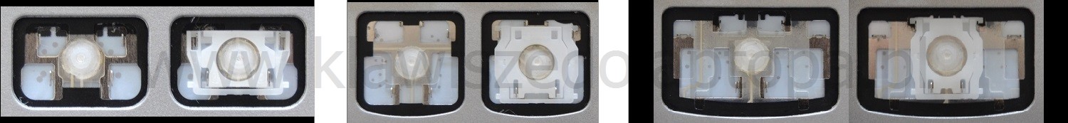 - Para escolher o modelo correto, compare a foto do espaço vazio no seu teclado com as fotos abaixo, ou remova a tecla “A” – por baixo dela há sempre um encaixe médio.