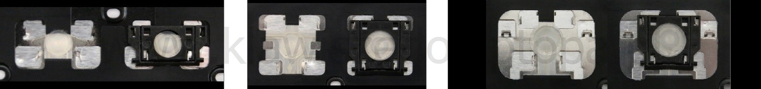 - Para escolher o modelo correto, compare a foto do espaço vazio no seu teclado com as fotos abaixo, ou remova a tecla “A” – por baixo dela há sempre um encaixe médio.
