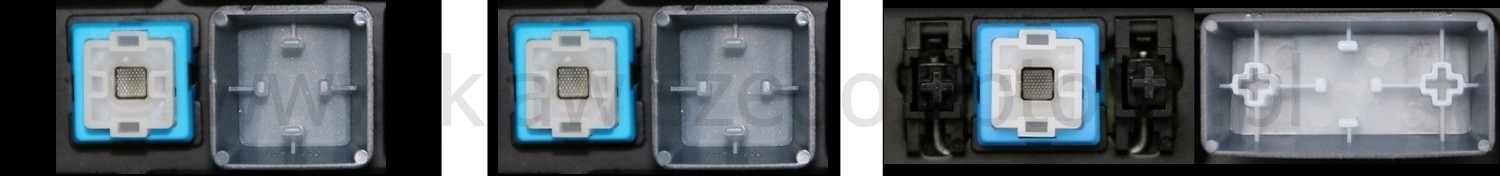 - Para escolher o modelo correto, compare a foto do espaço vazio no seu teclado com as fotos abaixo, ou remova a tecla “A” – por baixo dela há sempre um encaixe médio.
