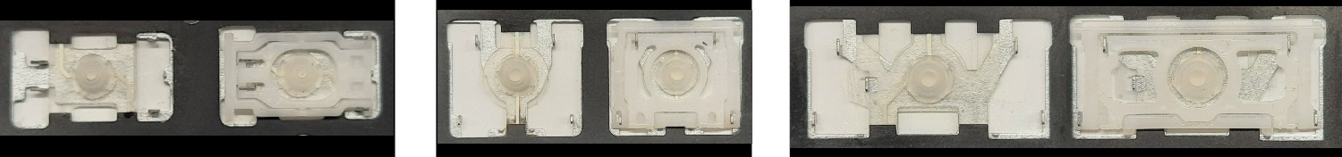 - Na maioria dos teclados que parecem idênticos por fora foram usados diferentes tipos de encaixes sob as teclas.