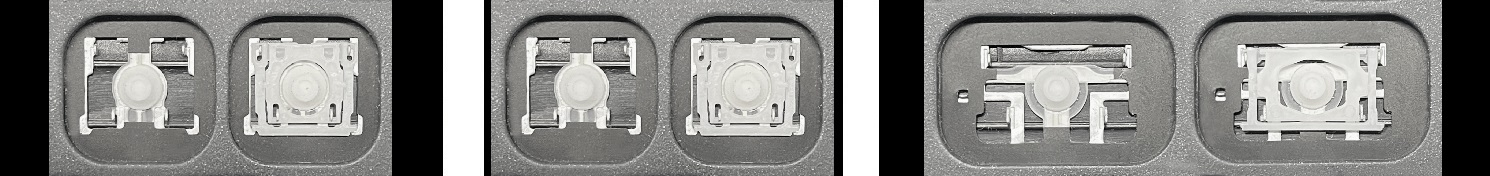 - Para escolher o modelo correto, compare a foto do espaço vazio no seu teclado com as fotos abaixo, ou remova a tecla “A” – por baixo dela há sempre um encaixe médio.