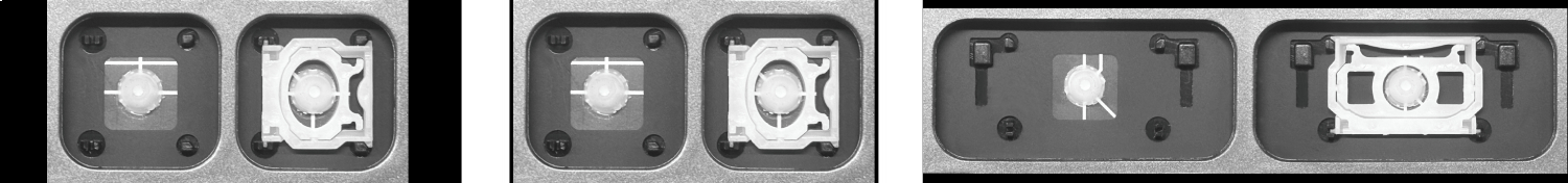 - Para escolher o modelo correto, compare a foto do espaço vazio no seu teclado com as fotos abaixo, ou remova a tecla “A” – por baixo dela há sempre um encaixe médio.