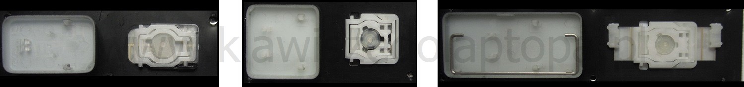 - Para escolher o modelo correto, compare a foto do espaço vazio no seu teclado com as fotos abaixo, ou remova a tecla “A” – por baixo dela há sempre um encaixe médio.