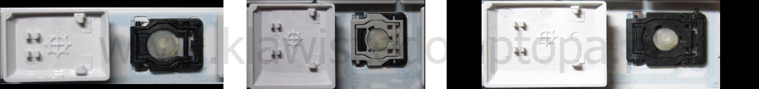 - Para escolher o modelo correto, compare a foto do espaço vazio no seu teclado com as fotos abaixo, ou remova a tecla “A” – por baixo dela há sempre um encaixe médio.